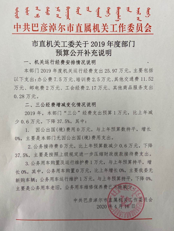 市直机关工委关于2019年度部门预算公开补充说明