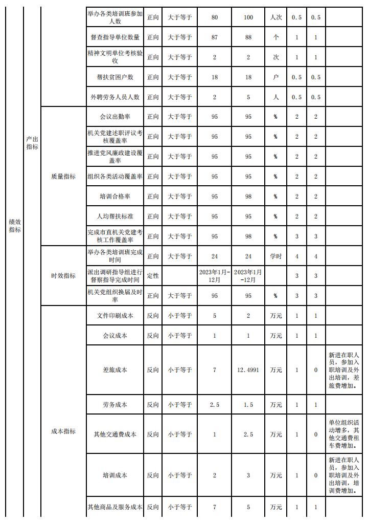 绩效目标实际完成情况:市直机关工委在贯彻落实全面从严治党总要求,以好的思路、实的作风、硬的举措,推动机关党建各项工作顺利完成。充分发挥党建引领作用,进一步加强党员干部党性修养、进一步提高党员干部政治站位、更好的激励党员干部在乡村振兴、保障民生、经济社会发展、服务群众等当前重大任务中持续发挥作用。
