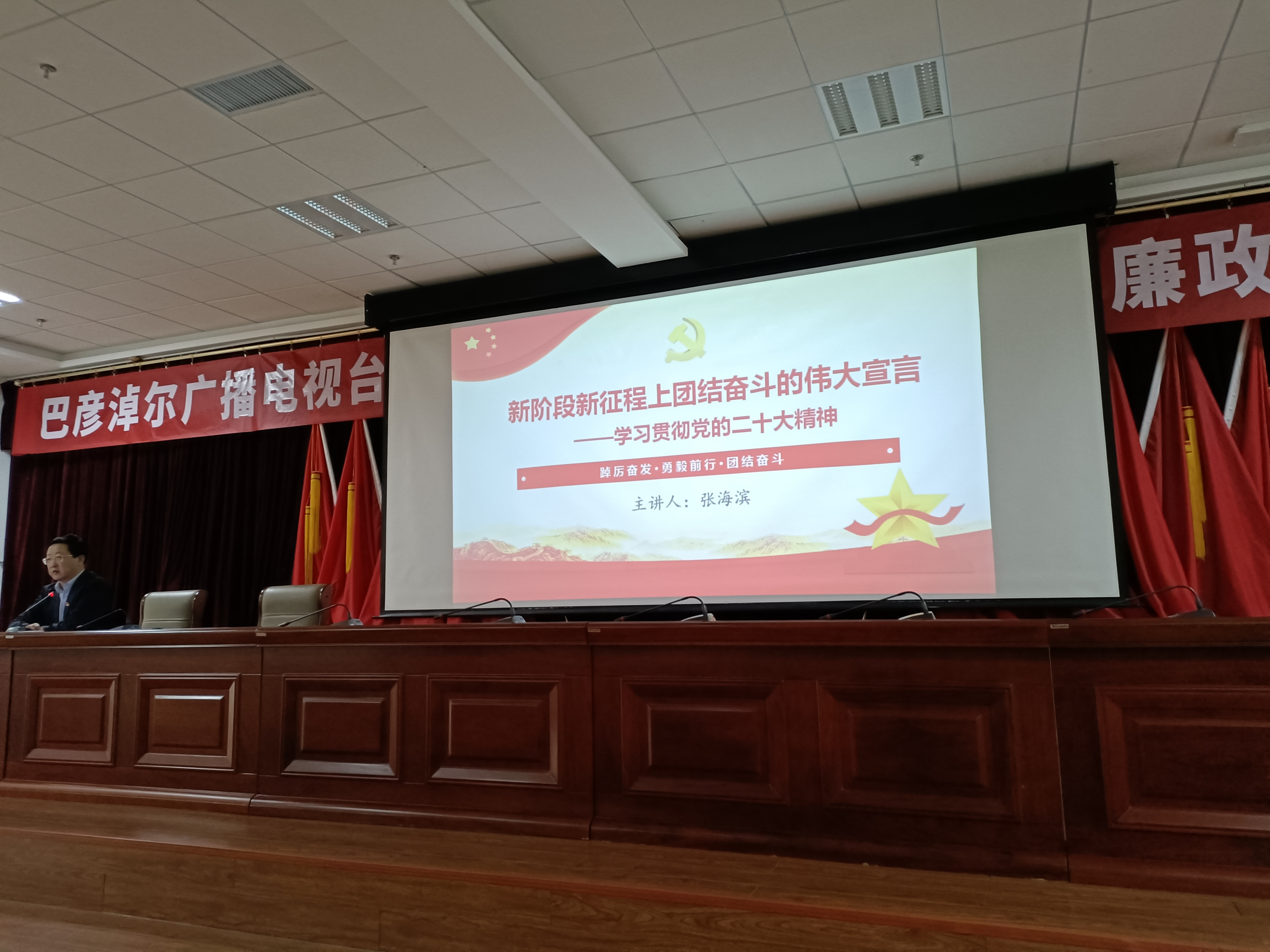3月10日下午,市广播电视台组织党员干部进行学习贯彻党的二十大精神专题党课辅导。台党组书记、台长张海滨以“新阶段新征程上团结奋斗的伟大宣言——学习贯彻党的二十大精神为主题”,以党的二十大报告要点为主线结合实际,详细解读了党的二十大精神的丰富内涵和核心要义,深入分析了二十大报告对推进文化自信自强、铸就社会主义文化新辉煌工作的具体指引。